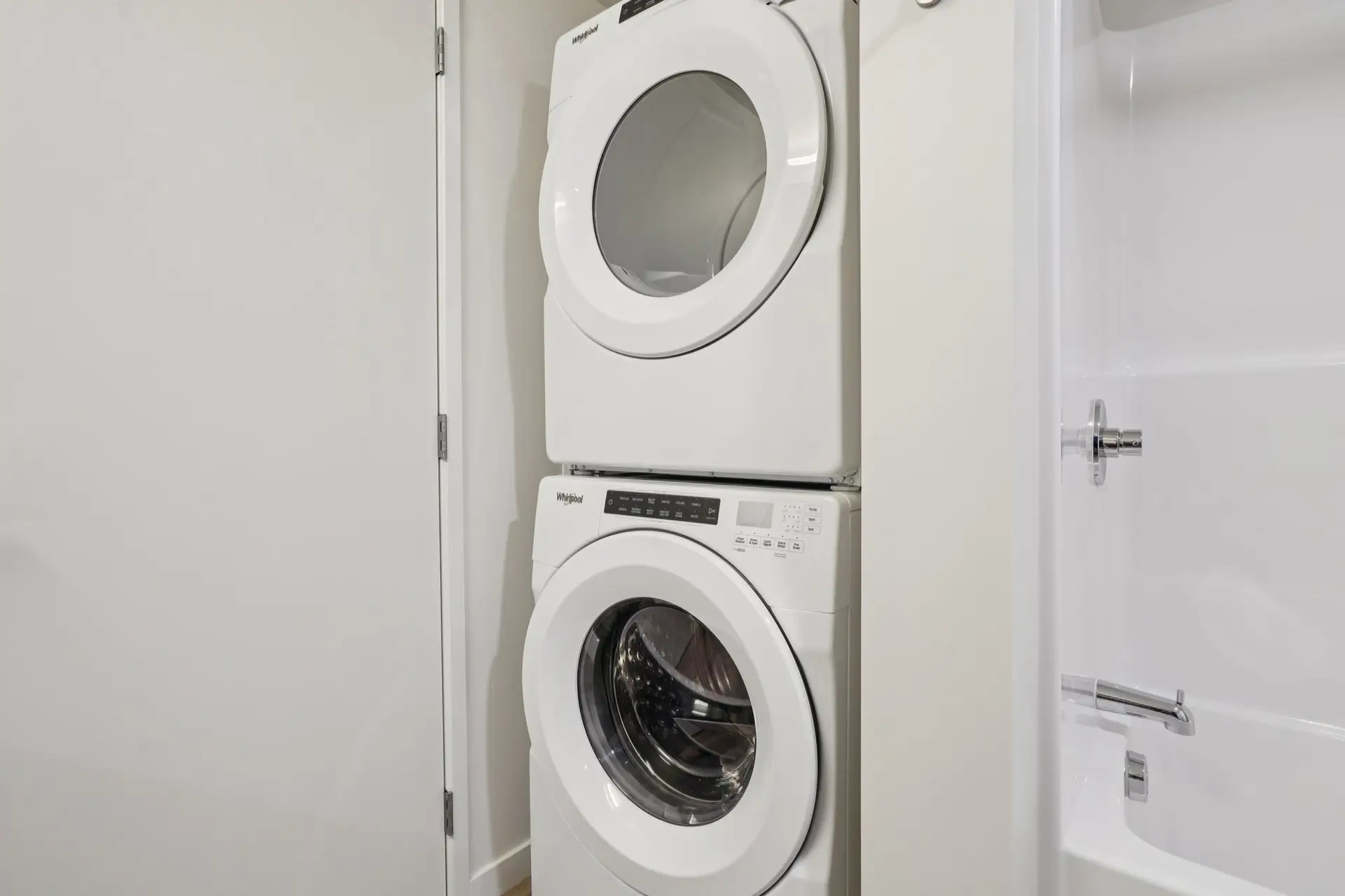 - Full-size washer and dryer with pedestals